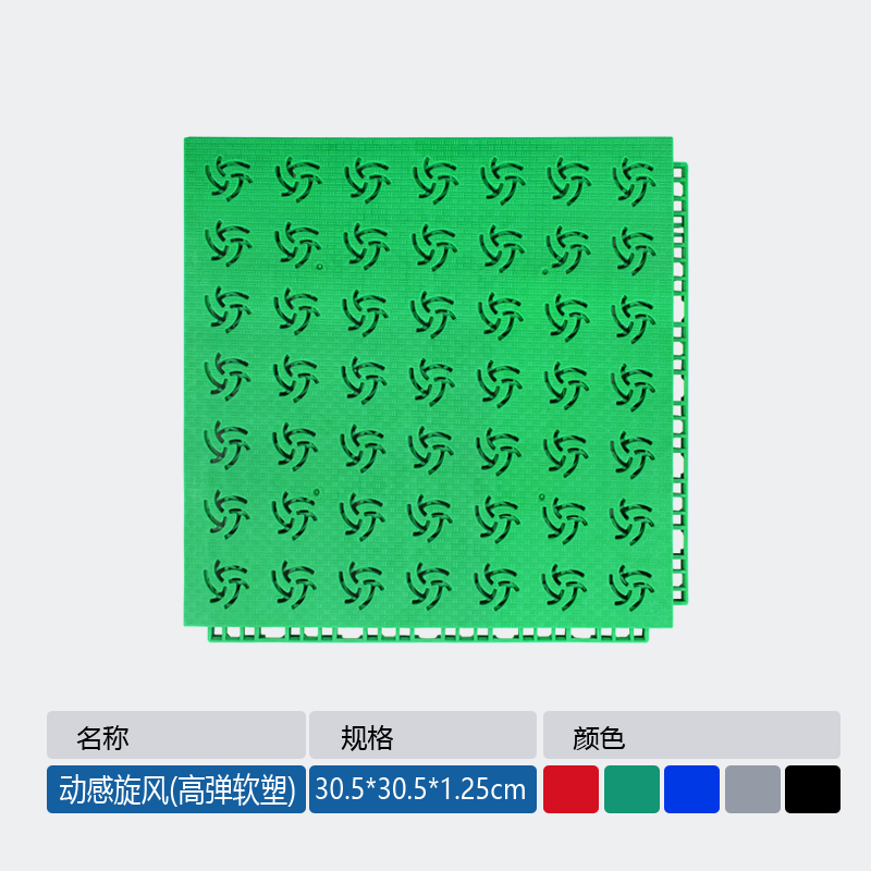 首頁 - 產(chǎn)品中心 - 室外拼裝地板- 休閑系列 - 動感旋風(高彈軟塑)